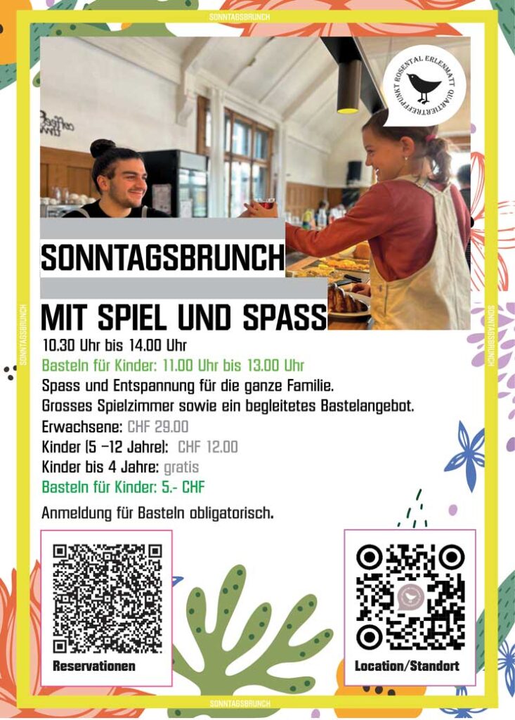 Spass und Entspannung für die ganze Familie. Ein leckeres Buffet, grosses Spielzimmer, sowie auf Anfrage ein begleitetes Bastelangebot erwarten euch.