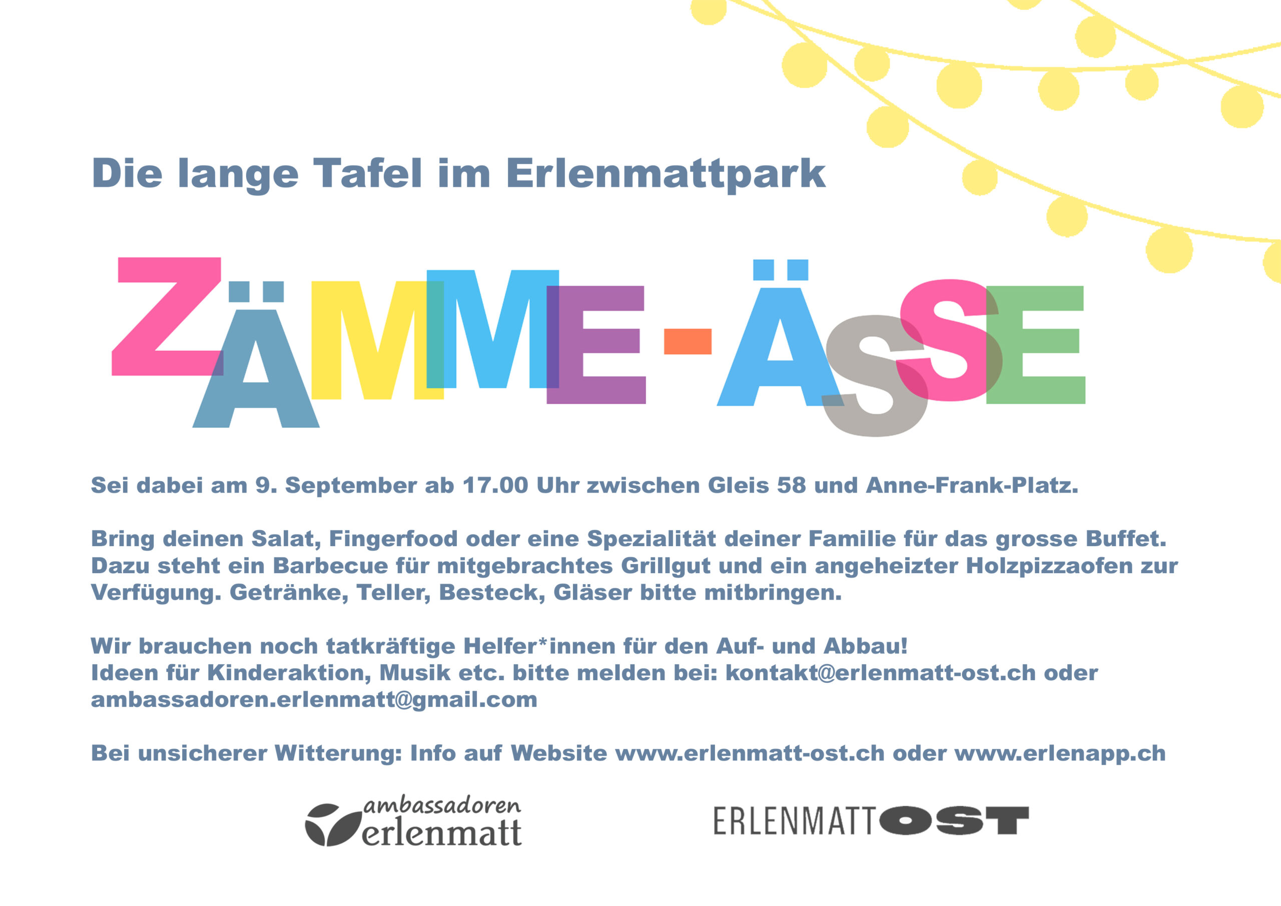 ZÄMME-ÄSSE – die lange Tafel im Erlenmattpark