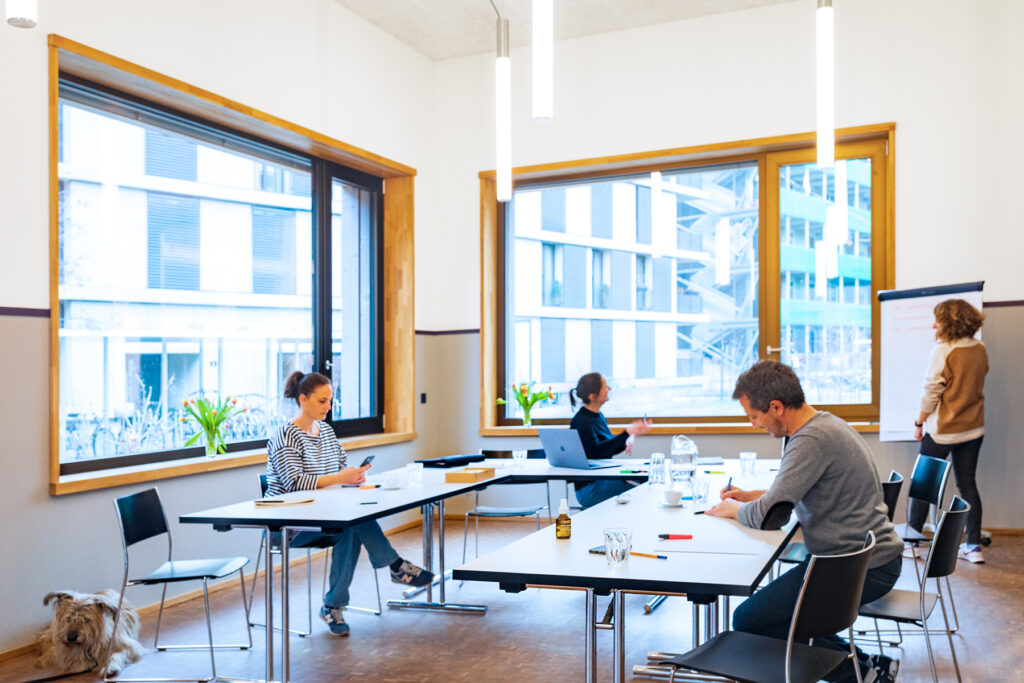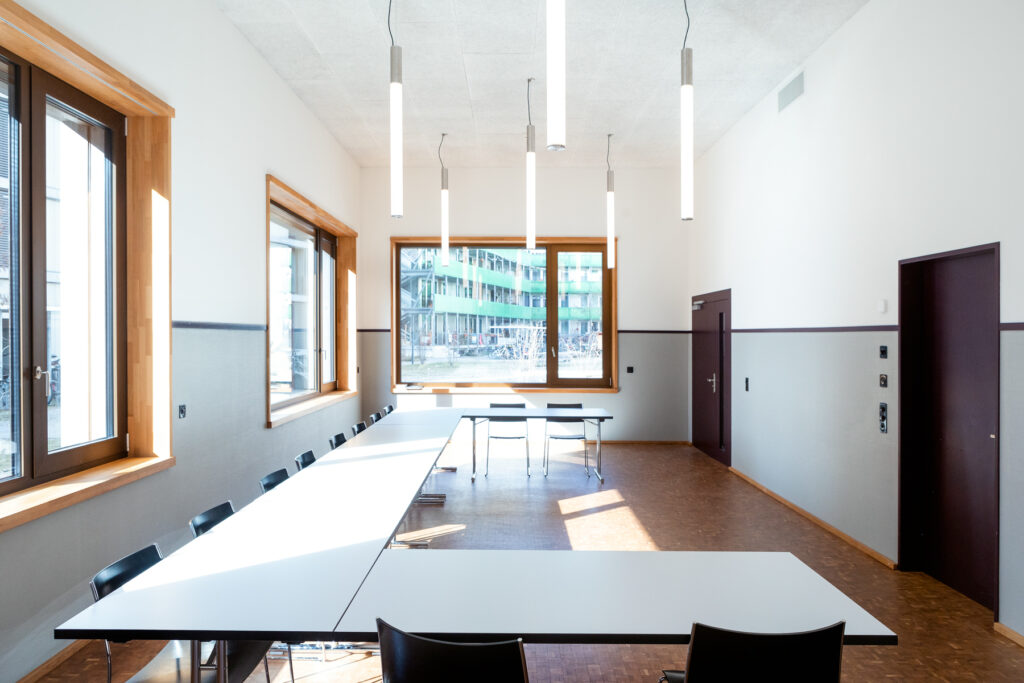Der Gemeinschaftsraum Erlenmatt Ost kann für Besprechungen, Familienfeiern, Vorführungen oder Workshops/Seminare gemietet werden.